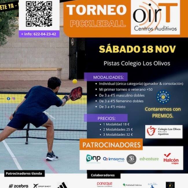 El primer torneo de Pickleball OirT Centros Auditivos se celebrará este sábado en el Colegio Los Olivos (Málaga) a partir de las 9 horas ofrecido por Pickleball Europe.