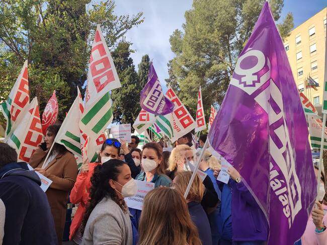 Los sindicatos UGT y CCOO han mantenido este jueves, 11 de enero, una concentración a las puertas de las urgencias del hospital Regional de Málaga para exigir al Servicio Andaluz de Salud y a la Consejería de Salud y Consumo "medidas inmediatas" ante la situación "insostenible y desesperante" de profesionales y pacientes,"una protesta que no solo va dirigida al conflicto que tenemos de colapso. Va enfocada a ese déficit constante que viene sufriendo la sanidad desde años, a esa derivación continua y constante al sector privado, a ese recorte de personal y a esa minoración de derechos de los trabajadores del servicio de sanidad", según explican en un comunicado conjunto