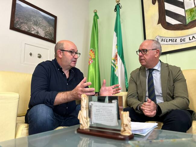 Momento de la reunión del delegado de la Junta de Andalucía, Jesús Estrella (Dcha.), con el alcalde de Bélmez de la Moraleda, Pedro Jesús Montévez (Izqda.) / Junta Andalucía