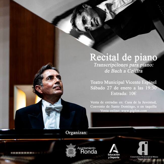 El conservatorio de Música de Ronda ha presentado un recital de piano del maestro Juan Ignacio Fernández Morales. El concierto se llevará a cabo el próximo sábado 27 de enero en el Teatro Vicente Espinel a partir de las 19:30 de la tarde.