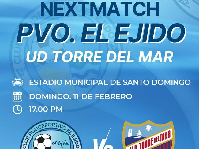 Regresa al estadio municipal de Santo Domingo el Polideportivo El Ejido en su horario habitual, pero en esta ocasión ante un rival que ocupa una posición de privilegio como es la UD Torre del Mar.