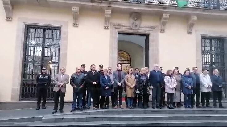 La corporación municipal se ha sumado este lunes a las puertas del Ayuntamiento de Jerez a la condena por el asesinato el pasado viernes de dos agentes de la Guardia Civil en Barbate a manos de unos narcotraficantes. A las 9:30 h se ha guardado un minuto de silencio en la puerta del consistorio jerezano. El acto ha sido convocado por la Federación Española de Municipios y Provincias (FEMP) que preside la alcaldesa de Jerez, María José García Pelayo.