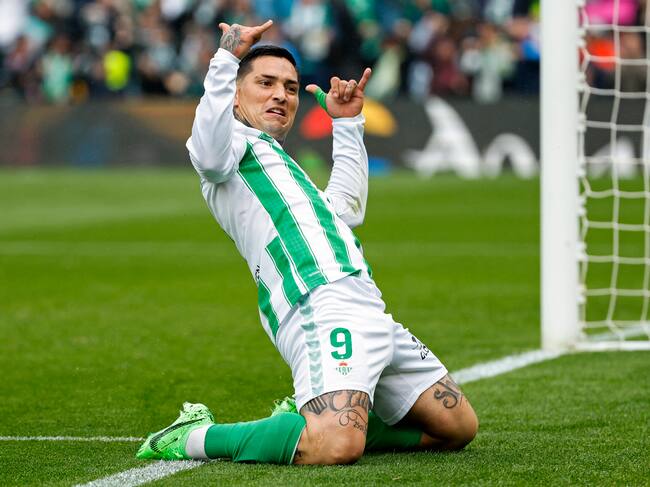 -FOTODELDÍA- SEVILLA, 25/02/2024.- El delantero argentino del Betis Chimy Ávila celebra el primer gol de su equipo durante el partido de la Jornada 26 de LaLiga que Betis y Athletic disputan este domino en el estadio Benito Villamarín. EFE/ Julio Muñoz / Julio Muñoz (EFE)