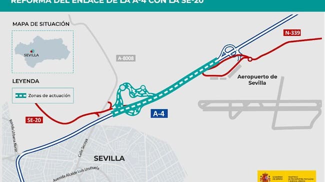 El Ministro de Transportes y Movilidad Sostenible del Gobierno de España, Óscar Puente, ha anunciado en su red social X, anteriormente Twitter, la adjudicación de 26.3 millones de euros para reformar el enlace de la A-4 con la SE-20, dirección con el sector San Nicolás Oeste. Según Puente, esta reforma hará al enlace más accesible y permitirá una mejor conexión con el Aeropuerto de Sevilla y la N-339.