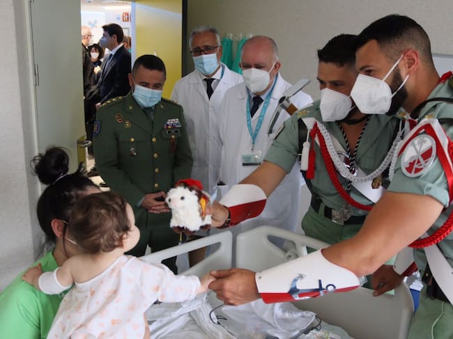 La Brigada Rey Alfonso XIII ha realizado un recorrido por el hospital de día pediátrico, la planta de oncología infantil, y diálisis, y han terminado su visita en la ludoteca donde les esperaban muchos pequeños, algunos familiares y profesionales que no han querido perder la oportunidad de compartir un momento distendido con los visitantes.