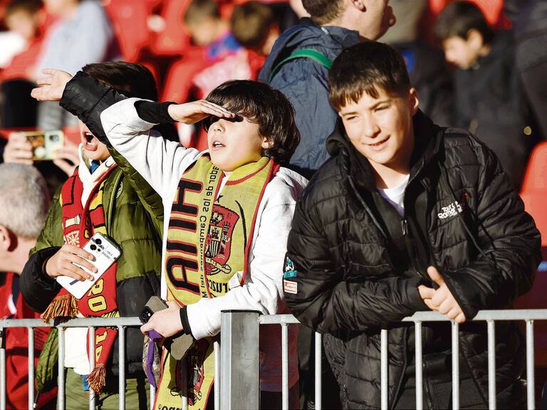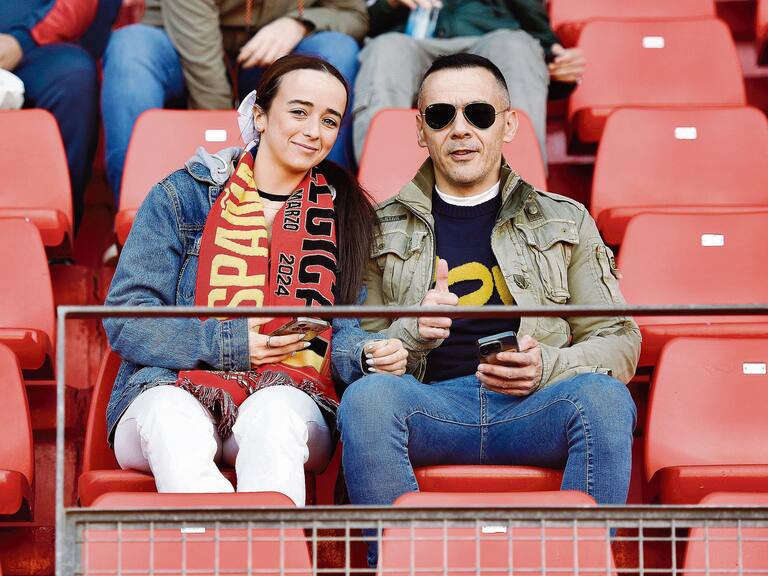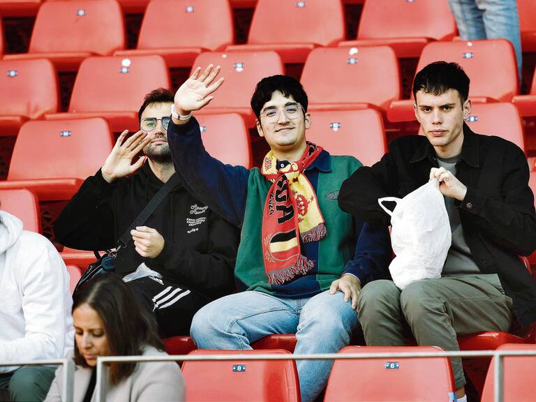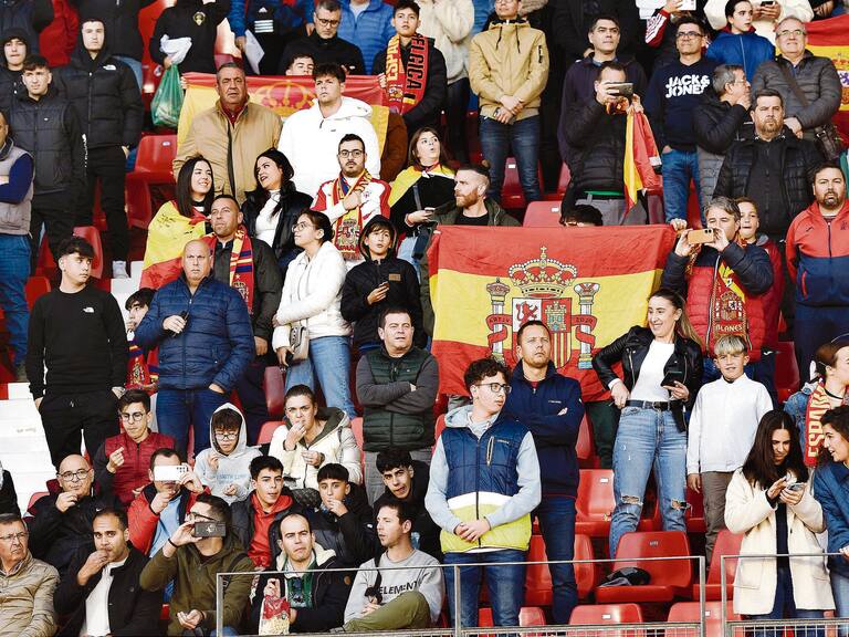 Ambiente de gala en el Estadio de los Juegos Mediterráneos con motivo del partido de la Selección Española Sub-21 de Santi Denia ante Bélgica, encuentro clasificatorio para el Europeo que se celebrará en Eslovaquia en 2025. El recinto deportivo de la Vega de Acá se pintó de rojo con una afición entregada desde el primer minuto hasta el final.