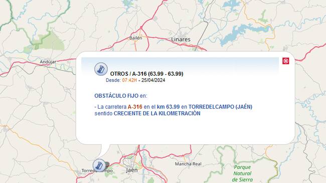 La A-316 permanece con uno de sus carriles cortados al tráfico tras un accidente. / DGT.