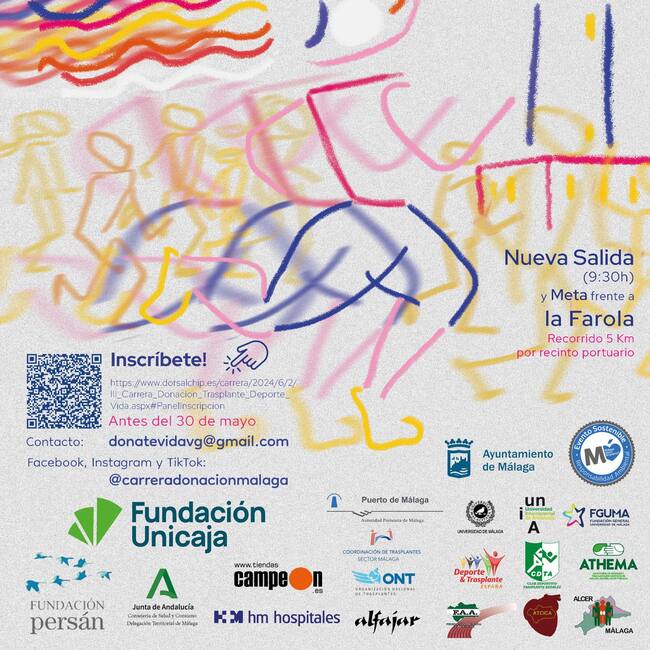 La tercera edición de la carrera Donación, Trasplante y Vida Memorial Vicente Granados Cabezas, se celebrará el próximo 2 de junio con el recorrido de cinco kilómetros por el Muelle Uno de Málaga.