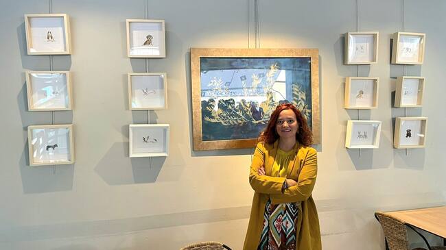 Rocío Fontán junto a algunas de las acuarelas de la exposición / R.F.