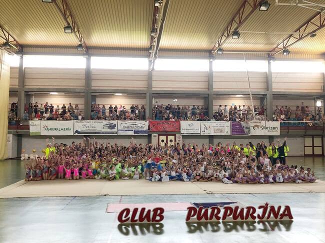 El Club Deportivo Purpurina clausuró la temporada 23-24 de las Escuelas de Gimnasia Rítmica de Roquetas de Mar en el Pabellón Máximo Cuervo. Con un total de unas 400 gimnastas y con gran respuesta por parte de los familiares y aficionados a este deporte consiguiendo un lleno absoluto en las gradas del pabellón. Que nadie se quiso perder la cita de las grandísimas gimnastas del club de Roquetas de Mar, con un público que vibró con la actuación de los distintos grupos que actuaron en el pabellón roquetero.