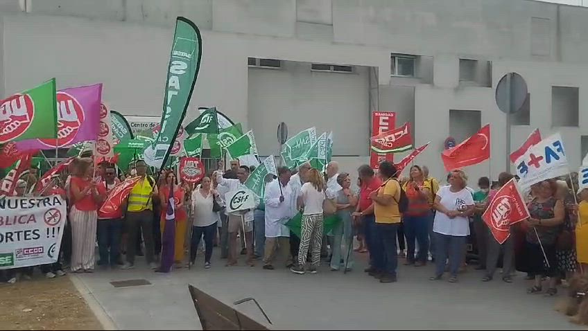 Protesta a las puertas del centro de Salud de la barriada de La Milagrosa, Jerez, contra los recortes en las contrataciones de personal sanitario