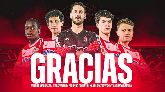 Aprovechando la fecha tradicional de fin de curso el Granada ha anunciado en su página web que: "Este domingo, 30 de junio, varios jugadores de la plantilla del primer equipo del Granada Club de Fútbol finalizan su relación contractual con la entidad. Raúl Fernández, José Callejón, Antonio Puertas, Víctor Díaz, Raúl Torrente, Alberto Soro y Alpha Diounkou acaban contrato. Además, Bruno Méndez ha ejecutado la cláusula liberatoria de su contrato. Por su parte, Faitout Maouassa, Jesús Vallejo, Facundo Pellistri, Kamil Piatkowski y Augusto Batalla finalizan su período de cesión".