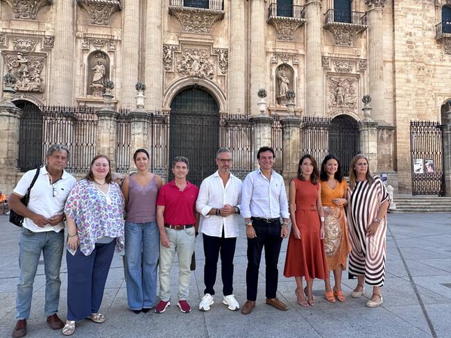 El equipo del PP en el Ayuntamiento de Jaén junto al vicesecretario de Economía del PP, Juan Bravo. / Radio Jaén.