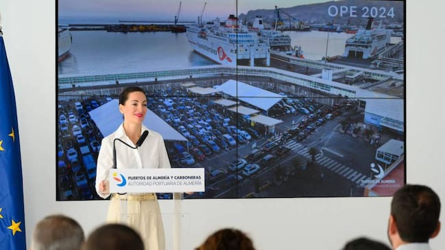 La presidenta de la Autoridad Portuaria de Almería, Rosario Soto, ha hecho balance de la OPE 2024.
