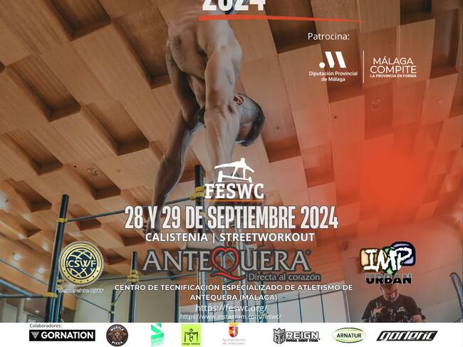 Este fin de semana, 80 deportistas de todo el país participarán en la final del Campeonato Nacional de Calistenia y Street Workout, el evento principal del calendario deportivo anual de la Federación Española de Street Workout y Calistenia (FESWC), que se celebra en el Centro de Tecnificación de Atletismo de Antequera, con capacidad para 2.000 espectadores. Las invitaciones se pueden reservar en www.feswc.org.