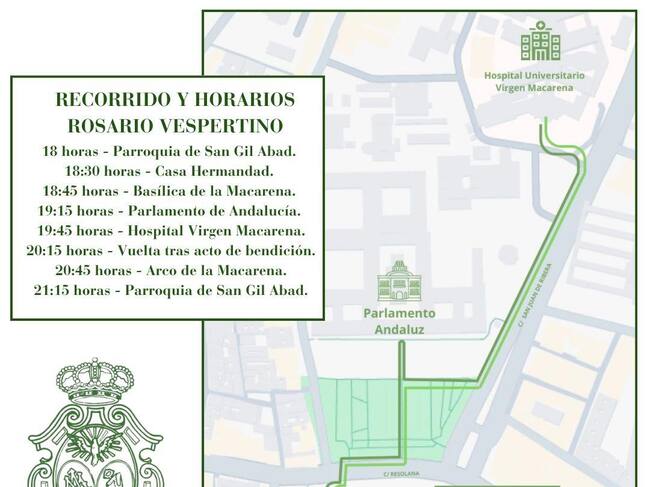 Itinerario que seguirá el Simpecado de La Macarena en su visita al Hospital Virgen Macarena / @HRocio_Macarena