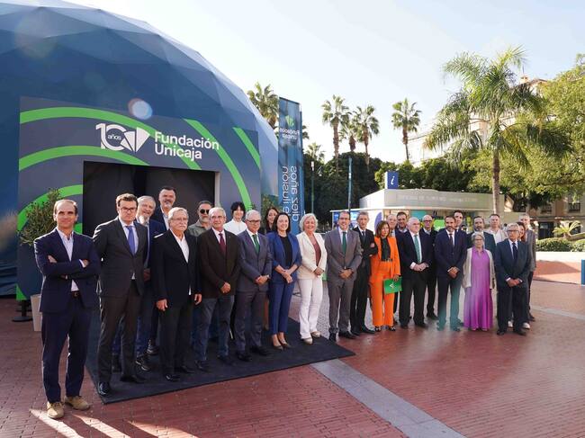 Fundación Unicaja ha inaugurado este miércoles en la Plaza de la Marina un espacio abierto al público como eje central de la programación de actividades conmemorativas que ha preparado la institución para celebrar su décimo aniversario. El Espacio Fundación Unicaja, que podrá visitarse hasta el 1 de noviembre, cuenta con un domo geodésico de 250 metros cuadrados con una innovadora exposición inmersiva, experiencias de realidad virtual, y un auditorio para charlas y conciertos. Además, tiene una zona exterior para actividades infantiles, talleres medioambientales y actividades multideportivas.