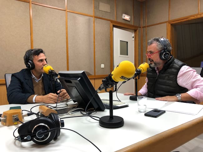El hermano mayor de San Roque, Rafael Durán -a la izquierda- conversa con Paco García en el programa Cruz de Guía / Cadena SER