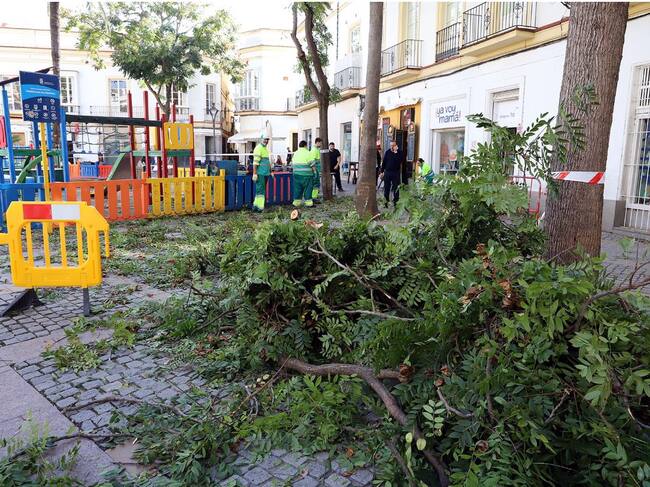El árbol se ha caído junto al parque infantil de la plaza del Progreso / Ayuntamiento de Jerez
