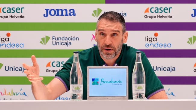 Ibon Navarro, en la sala de prensa del Martín Carpena / Unicaja Baloncesto