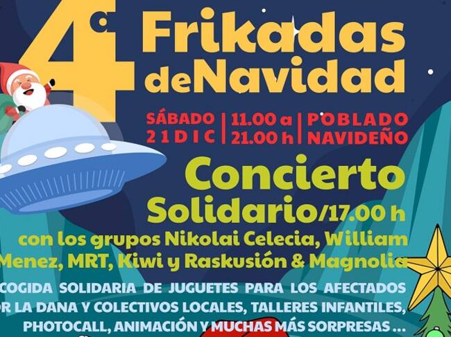 Las cuartas Frikadas de Navidad en La Línea se celebrarán el sábado, 21 de diciembre de 11.00 a 21.00 horas, en el Pueblo Navideño, que de forma extraordinaria en esta ocasión contará con un concierto solidario con los grupos Nikolai Celecia, William Menez, MRT, Kiwi y Raskusion & Magnolia, bandas muy jóvenes procedentes de Gibraltar, La Línea de la Concepción y Algeciras.