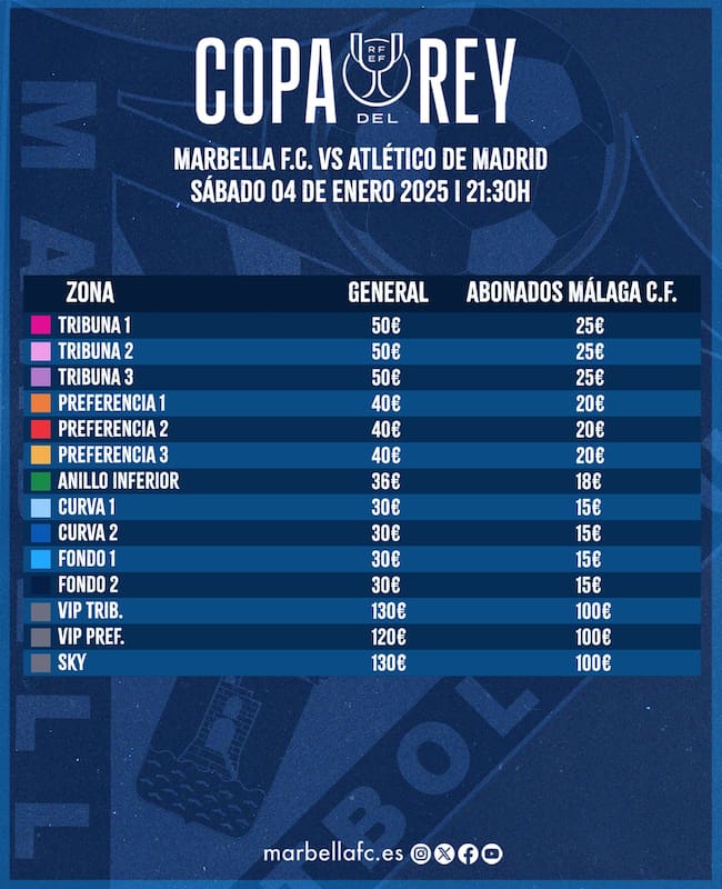 En los próximos días, el club marbellí informará detalladamente a todos sus socios como podrán retirar las entradas e igualmente informará del precio de las localidades para el público en general.