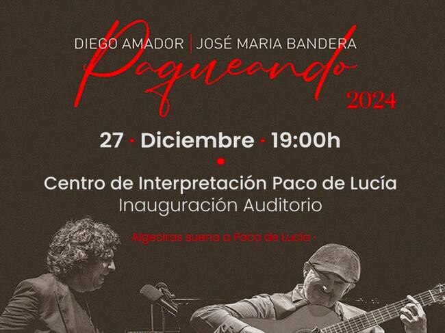 Así, el proyecto ‘Algeciras suena a Paco de Lucía’, organizado por el Ayuntamiento de Algeciras a través de la empresa ‘Emell Eventos’, y la financiación de la Diputación de Cádiz, traerá el concierto ‘Paqueando’ de Diego Amador y José María Bandera para la inauguración del auditorio, el viernes 27 de diciembre a las siete de la tarde, así como el espectáculo ‘La Navidad con Felipa del Moreno’, el lunes 30 de diciembre a las siete de la tarde, en el que la artista estará acompañada de Manuel Valencia a la guitarra, Carlos Merino a la percusión, y a los coros Carmen Fernández, Lola Soto, Antonia Medrano y José Soto.