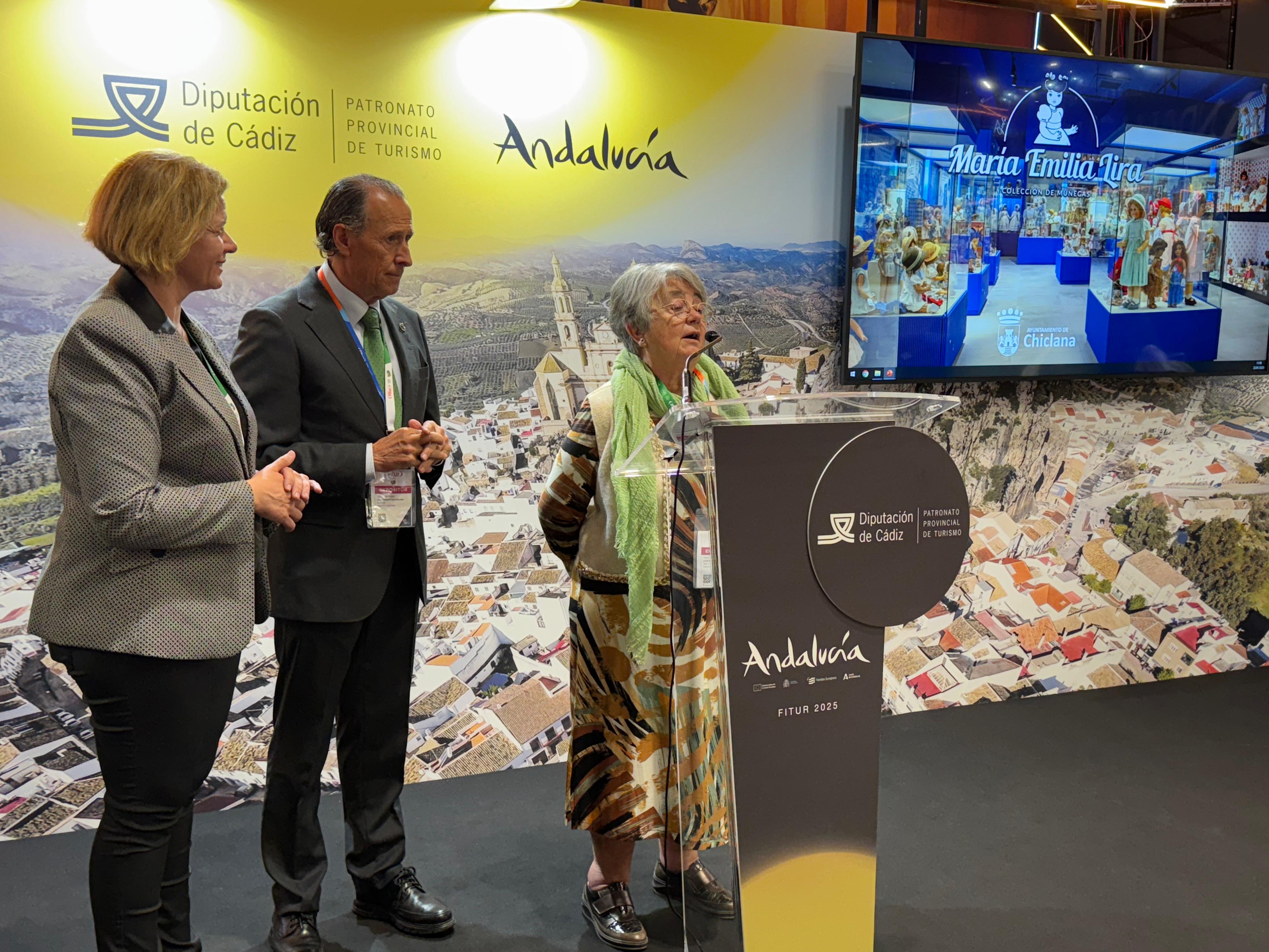 “Después de lo que Chiclana ha conseguido en su muy largo verano, estamos en el esfuerzo de crecer en la temporada baja. Y un complemento ideal es fortalecer la oferta cultural, tal y como hacemos con la Colección de Muñecas María Emilia y antes otros equipamientos como Nueva Gadeira”, ha expresado el alcalde durante la presentación de la Colección de Muñecas María Emilia Lira en Fitur, donde ha estado acompañada por la propia María Emilia. “El fortalecimiento del espacio cultural es un atractivo más para potenciar el Destino Chiclana. Agradecer a María Emilia y a su marido Roberto que nos facilitara la colección de muñecas”, ha manifestado.