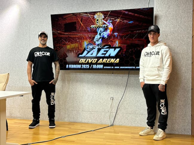 Edgar Torronteras y Unai Aguiló durante la presentación del Soloflow Motocross Freestyle Jaén. / Radio Jaén