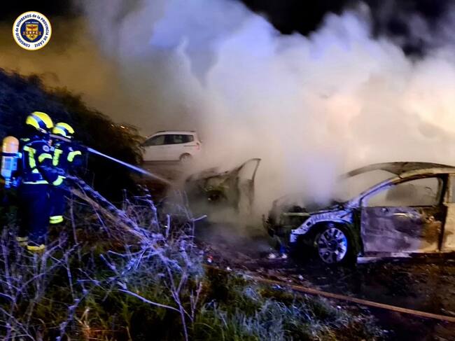 De momento se desconocen las causas del fuego, pero dos de los coches han quedado totalmente calcinados y el tercer vehículo ha resultado afectado por las llamas en la parte trasera.