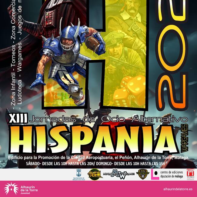 Las jornadas de ocio alternativo Hispania Wargames regresan a Alhaurín de la Torre los próximos días 22 y 23 de febrero. El gran evento de los juegos de tablero, de estrategia, rol y miniaturas cumple su décima tercera edición, con entrada libre y gratuita, pero con la gran novedad del cambio de escenario: el Edificio de Promoción de El Peñón en lugar del Polideportivo Cubierto Municipal El Limón, como hasta ahora. Esta actividad está consolidada como una de las grandes citas del calendario nacional de su género.