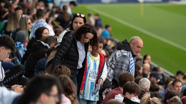 Locura por ver al Málaga entrenar. El equipo que entrena Sergio Pellicer se daba un baño de multitud a las puertas del partido de este sábado en el Mediterráneo. Un equipo alejado del descenso que empieza a mirar con descaro el Play Off moviliza a sus fieles seguidores para luchar por la gloria de la Primera. Ha sido a lo largo de la temporada uno de los mejores equipo y de los que menos pierde, compitiendo en un campo que se llena todas las jornadas de LaLiga. Ha llegado la hora de la verdad y el Málaga se suma a la fiesta del ascenso con su afición arropando a los jóvenes futbolistas que entrena Sergio Pellicer.