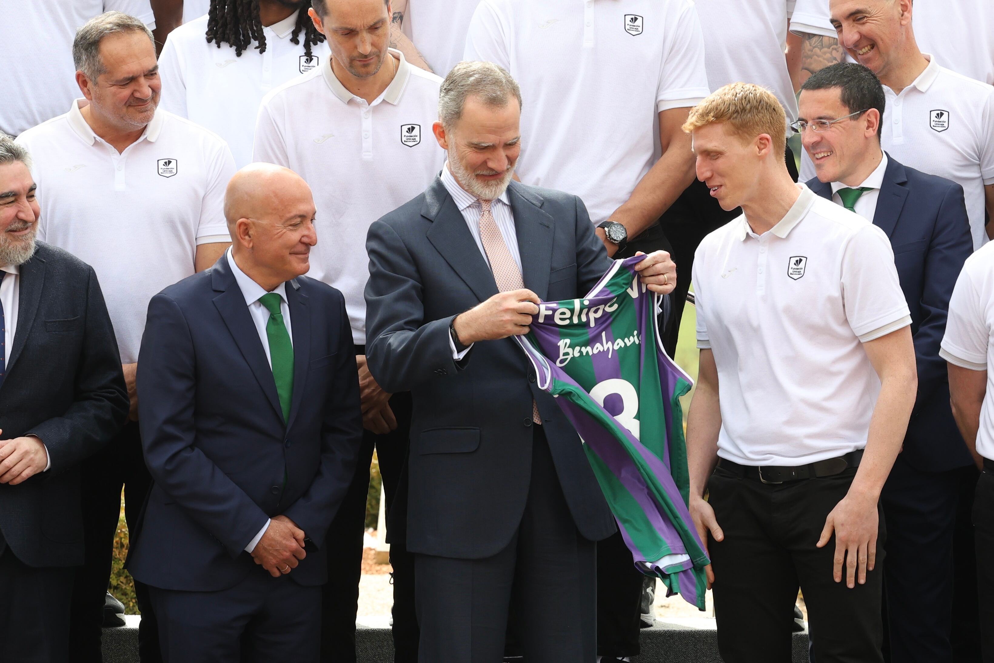 Su Majestad Felipe VI ha recibido este jueves en el Palacio de la Zarzuela al Unicaja para trasladar su felicitación por la victoria en la Copa del Rey 2025.