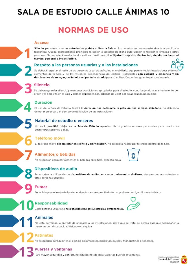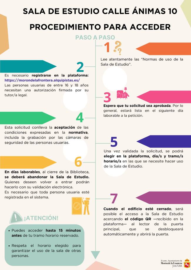 El acceso a la sala se gestionará a través de https://morondelafrontera.alquipistas.es/, donde los interesados deberán registrarse, obtener un usuario y, una vez habilitados, podrán reservar su plaza. De momento, se han habilitado 40 de las 51 plazas disponibles. A largo plazo, se está trabajando para permitir la reserva del mismo día, 15 minutos antes de la entrada.