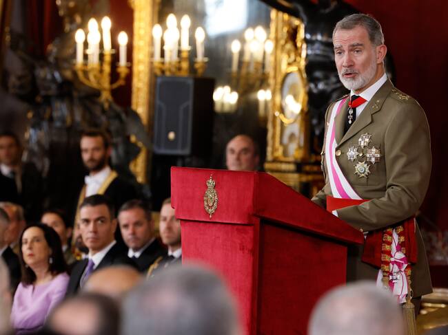 MADRID, 06/01/2025.- El rey Felipe VI pronuncia un discurso durante la celebración de la Pascua Militar este lunes en el Palacio Real en Madrid. EFE/ Ballesteros / POOL / BALLESTEROS (EFE)