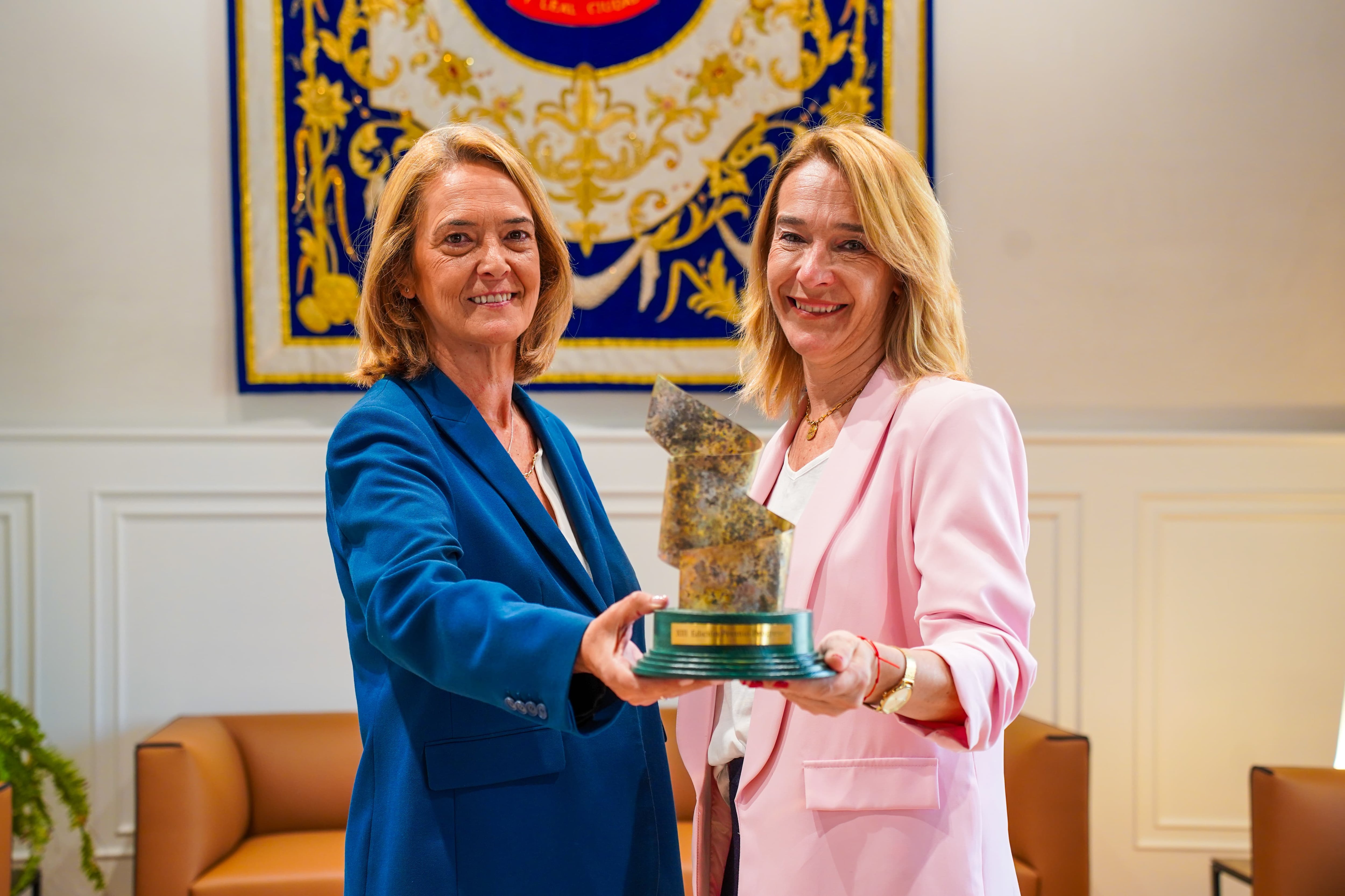 La alcaldesa de Motril, Luisa García, y la de Patrimonio Industrial, Madelin Banqueri muestran el Premio Progreso
