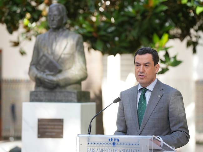 El presidente de la Junta de Andalucía, Juanma Moreno, en una imagen de julio de 2024, durante su intervención en el acto por el aniversario del nacimiento de Blas Infante. - María José López - Europa Press - Archivo