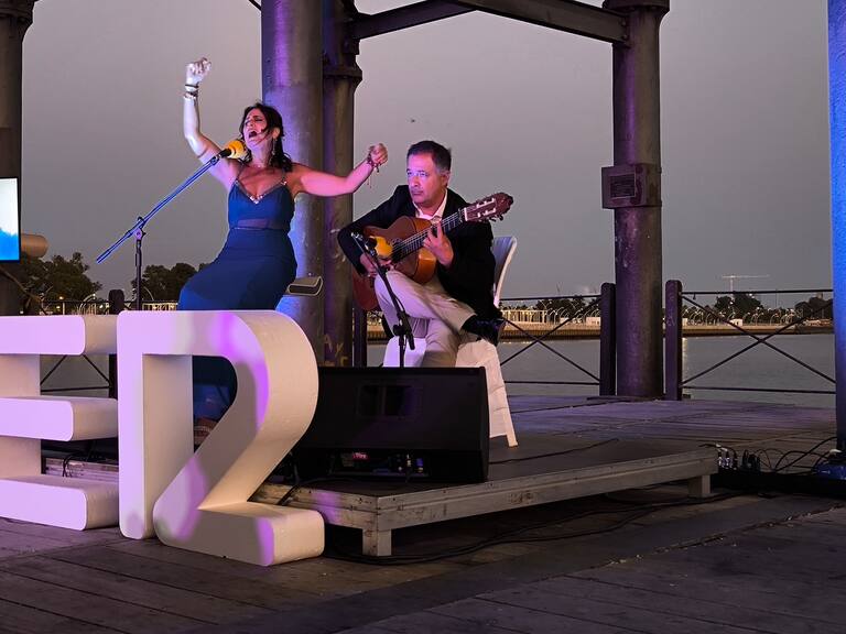 El jueves 24 de julio tuvo lugar una nueva edición de “Entre dos Orillas” (EDO 2025), la preciosa velada musical de la Cadena SER, previa a las fiestas Colombinas, en el marco excepcional del antiguo Muelle Cargadero de Mineral de la Compañía de Riotinto, en plena ría del Odiel.