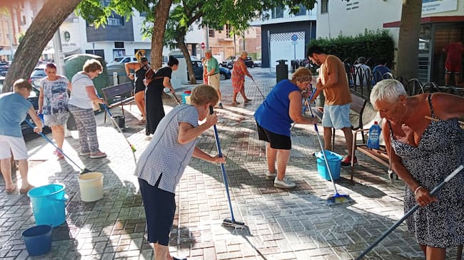 Vecinas de Las Delicias y Haza Honda salen a limpiar las calles (Málaga Ha Vesos)