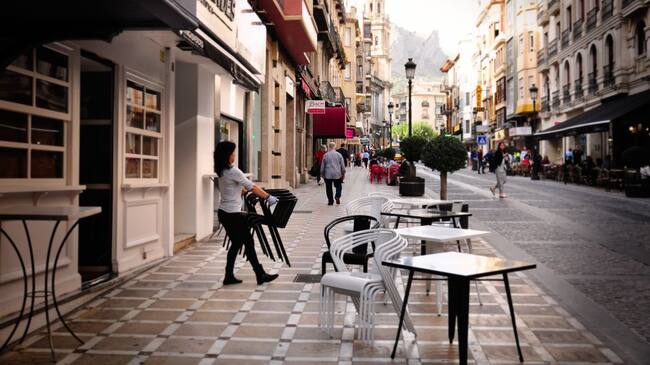 Una camarera pone la terraza de un restaurante de la capital. / Radio Jaén