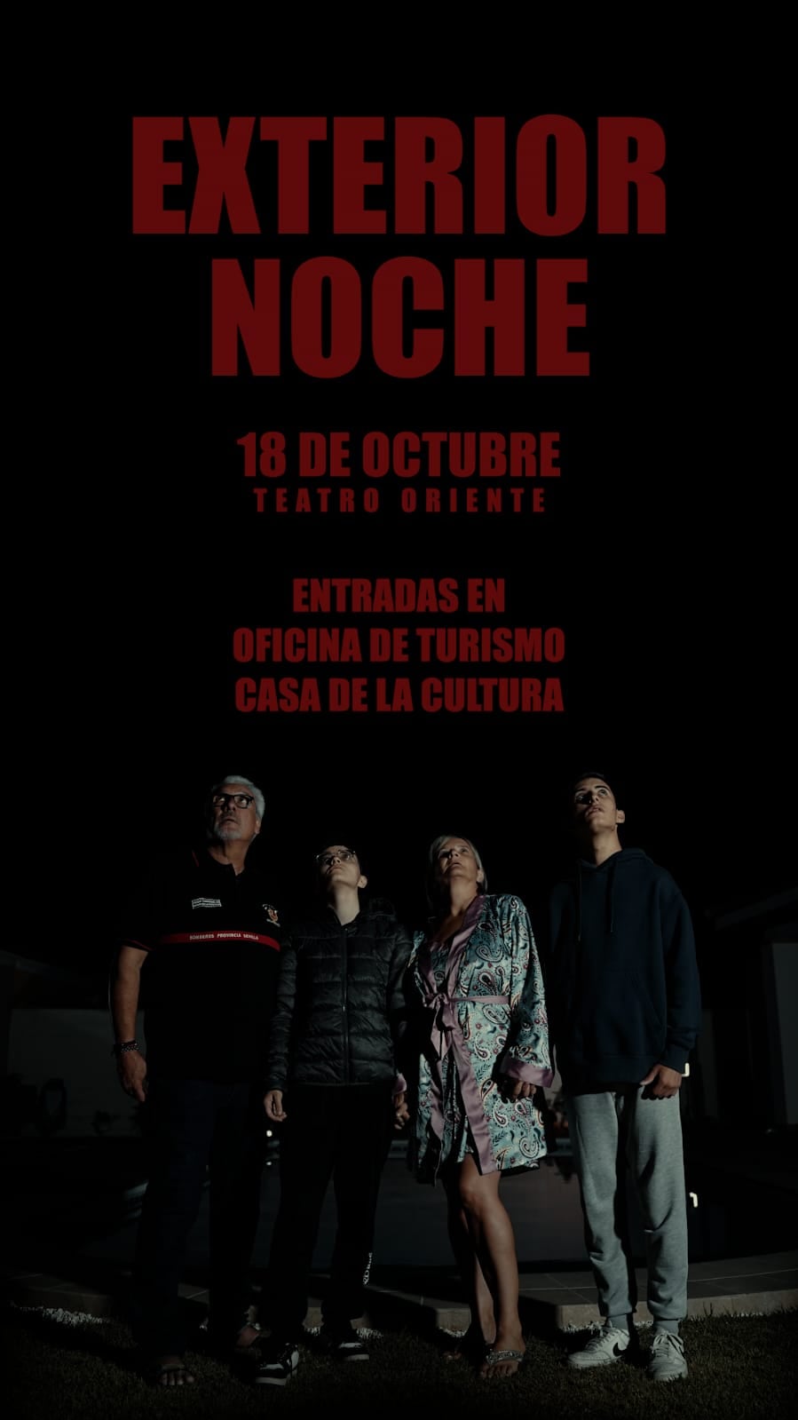 El director moronense, Juan Cádiz, presenta este sábado 18 de octubre su nuevo cortometraje, titulado “Exterior Noche”, en una proyección especial que tendrá lugar en el Teatro Oriente de Morón a las 20:00 horas. La obra, según su autor, “es nuestro primer acto de fe” tras un recorrido por varios festivales de cine amateur.