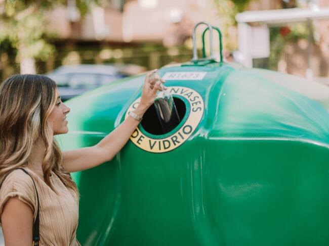 Imagen de archivo de una usuaria depositando una botella vacía en un contenedor de vidrio en Alicante / Ecoembes