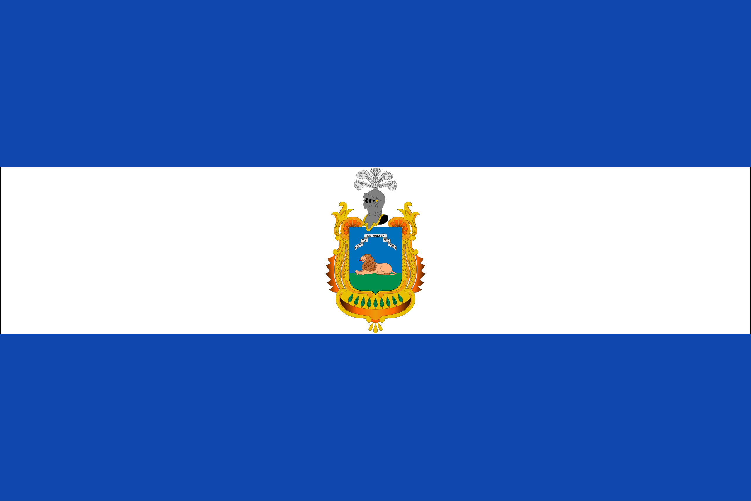 Este blasón en el que contiene la frase, con letra negra sobre fondo blanco, un color que representa la paz, sobre un fondo de color azul, un color que ya apareció en su primitivo escudo, que volverá a aparecer en la bandera y que en heráldica suele simbolizar la justicia y rectitud o la lealtad y fidelidad.