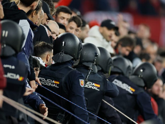 SEVILLA, 30/11/2025.- El partido entre Sevilla y Betis en el Sánchez Pizjuán ha sido aplazado por el arbitro José Luis Munuera en su tramo final por los objetos que han sido arrojados desde la grada. EFE/ José Manuel Vidal / José Manuel Vidal (EFE)