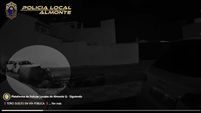 Fueron los propios vecinos los que alertaron a la Policía Local sobre la presencia de un toro suelto en la vía pública. De inmediato, las dos patrullas disponibles en el casco urbano se desplazaron al lugar y comprobaron la veracidad del aviso.