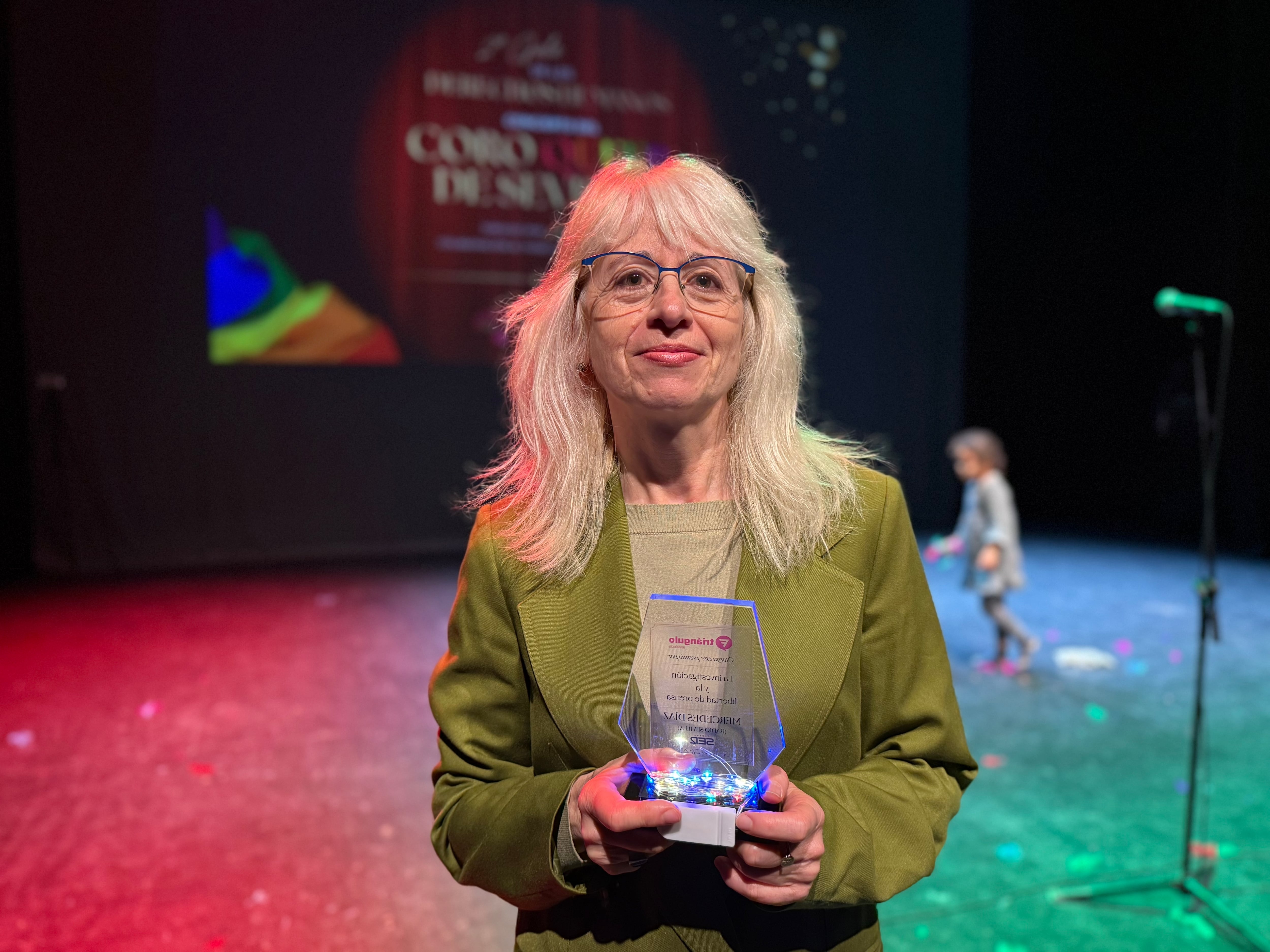 Junto a la periodista de Radio Sevilla han sido premiadas en esta segunda Gala de los Derechos Humanos celebrada en el Teatro TNT Atalaya otras entidades como la Plataforma de solidaridad con Palestina de Sevilla, la Comunidad Palestina de Sevilla, Cáritas Andalucía, la Asociación Nuestra Memoria y la asociación de mujeres con cáncer de mama AMAMA.
