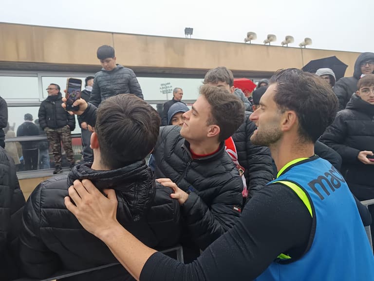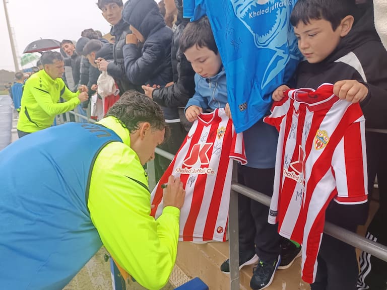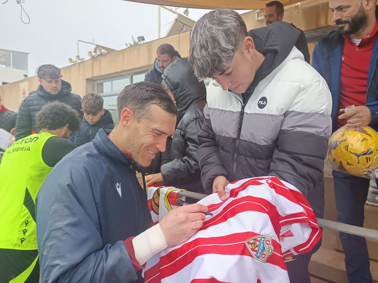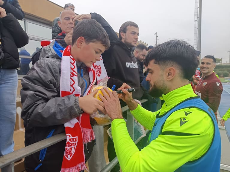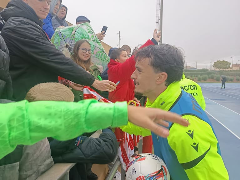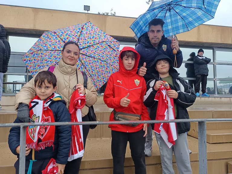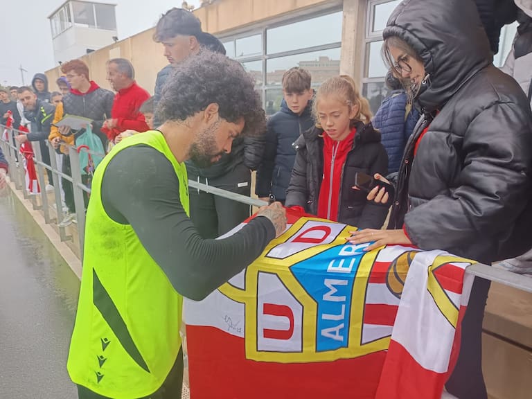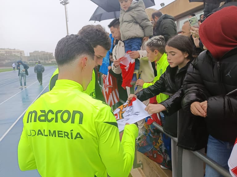 Un día muy especial para la afición del Almería que casi llenó la grada del campo Anexo del Estadio de los Juegos Mediterráneos. El club dio en la diana y abrió de par en par las puertas para que los aficionados de la UDA vieran de cerca a los futbolistas. Muchos niños y niñas acompañados por sus padres en una mañana en la que la lluvia fue protagonista en el primer entrenamiento de la semana antes de jugar el sábado ante el Mirandés, último partido de la primera vuelta del curso en el Campeonato Nacional de Liga en Segunda División.