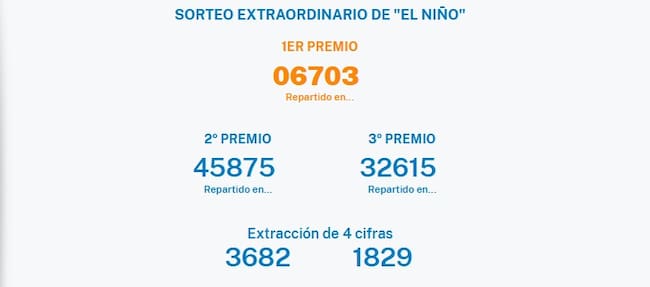 Números premiados Sorteo del Niño / ONLAE