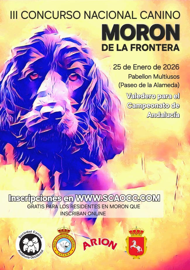 Morón de la Frontera volverá a convertirse el próximo 25 de enero en punto de referencia para los amantes del mundo canino con la celebración del III Concurso Nacional Canino, una cita ya consolidada en el calendario andaluz y que, por tercer año consecutivo, llega a la ciudad con una gran participación y proyección.