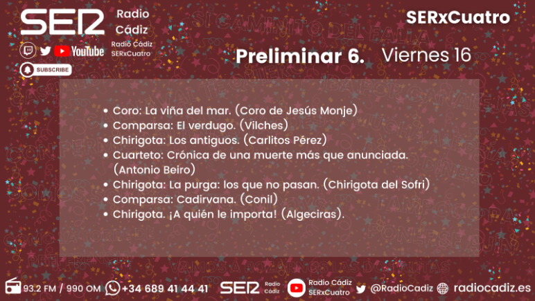 Así ha sido la sexta sesión de Preliminares del COAC 2026: revive el sexto día del Carnaval de Cádiz en Radio Cádiz